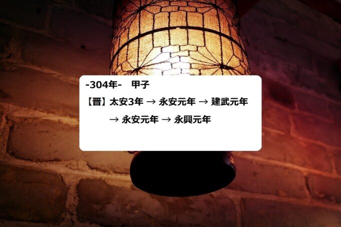 晋の太安3年→永安元年→建武元年→永安元年→永興元年は西暦(グレゴリオ暦)304年2月22日~305年2月10日